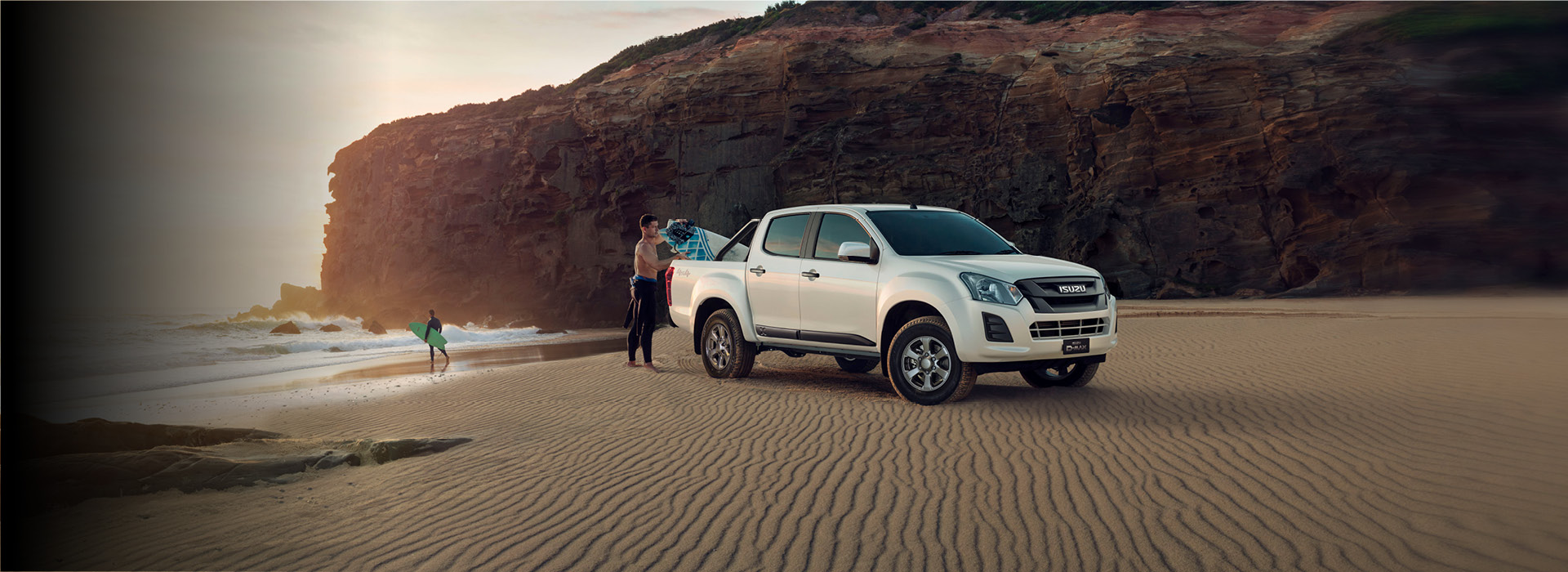 5-star ANCAP safety rating on 4x4 D-MAX Crew Cab models built from November 2013 onwards & 4x2 D-MAX Crew Cab High Ride models built from November 2014 onwards. *Private & ABN holders only on 2019 build plate (19MY) vehicles. Excludes government, fleet, rental & non-profit buyers. Includes one year business vehicle registration, CTP insurance, dealer delivery & statutory charges. Metallic/mica paint $500 extra. Only at Participating Isuzu UTE Dealers while stocks last. Not available with any other offer. +3.5 tonne braked towing capacity when fitted with an optional genuine Isuzu UTE tow bar kit. ^6 years/150,000km (whichever occurs first), for Eligible Vehicles with a Warranty Start Date on or after 1/1/19. Excludes trays & accessories. <6 years Roadside Assistance (unlimited kilometres) for Eligible Vehicles with a Warranty Start Date on or after 1/1/19. >The Capped Price Servicing Program (“CPS Program”) applies to Eligible Vehicles at Participating Isuzu UTE Dealers only. For 19MY & later vehicle models, the Capped Price Servicing covers the first 7 Scheduled Services for up to 7 years/105,000km (whichever occurs first). CPS Program is subject to change. For full terms & conditions, current pricing & model eligibility visit isuzuute.com.au/service-plus-disclaimer.